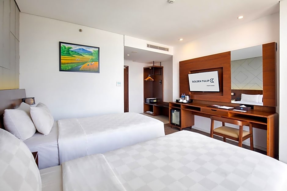 Superior Twin Room is 258 square feet and includes desk, satellite tv , safe, and slippers.